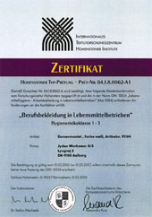 We would be pleased to supply you with your new HACCP clothes in the future. By request we also provide you with the certificates issued by Hohensteiner Institutes.